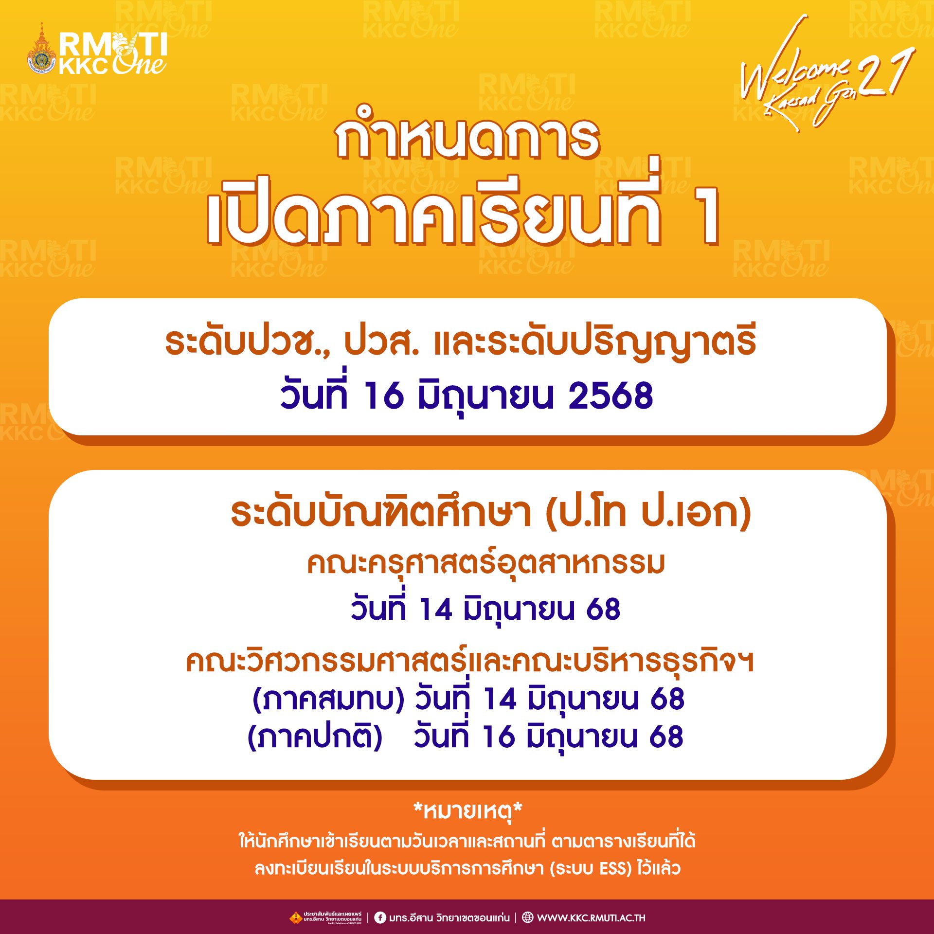 กำหนดการนักศึกษาใหม่ ประจำปีการศึกษา 2568